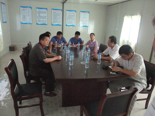 項(xiàng)目部經(jīng)理黃建海向李主席一行表示熱烈歡迎,就項(xiàng)目工程進(jìn)度、質(zhì)量、安全生產(chǎn)及職工的生活情況進(jìn)行了匯報(bào),李主席對(duì)項(xiàng)目部工作給予了肯定,并對(duì)項(xiàng)目部開展“雙爭(zhēng)”競(jìng)賽活動(dòng)作了指導(dǎo)。李主席一行深入施工現(xiàn)場(chǎng),向堅(jiān)守在一線的員工表示了慰問(wèn),他指出要做好一線職工防暑降溫工作,確保項(xiàng)目工程無(wú)一例安全事故,勉勵(lì)大家要抓住當(dāng)前有利的施工條件,進(jìn)一步加快施工進(jìn)度,抓好工程質(zhì)量,為公司項(xiàng)目創(chuàng)建品牌工程,并親手送上了防暑降溫物品。