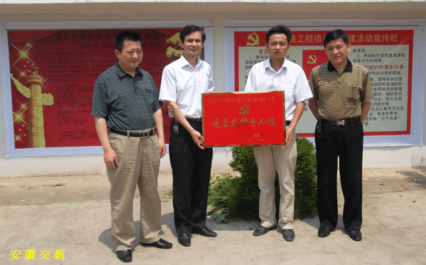 在授牌儀式上,吳曉伍主任對皖江路項目部在施工中不畏艱險、作風(fēng)過硬、積極向上,團(tuán)結(jié)進(jìn)取,勇于創(chuàng)新,黨建工作與施工生產(chǎn)有機(jī)結(jié)合,“創(chuàng)先爭優(yōu)”活動形式豐富多彩,從而有效促進(jìn)并加快了皖江路工程建設(shè),給予了充分肯定和高度贊揚。對全體參建員工提出了下一步工作的要求和希望:以深入開展創(chuàng)先爭優(yōu)活動為主線,進(jìn)一步以“黨員先鋒號工程”為載體,全員、全方位、全過程把各項工作落實到每個環(huán)節(jié)和所有崗位,圓滿落實工程進(jìn)度目標(biāo),安全優(yōu)質(zhì)完成后續(xù)施工任務(wù),認(rèn)真做好各項總結(jié)工作,為集團(tuán)生產(chǎn)經(jīng)營工作再創(chuàng)輝煌。