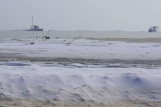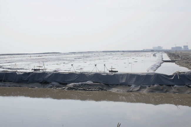 李總一行參觀了天津濱海新區(qū)圍海造田項目現(xiàn)場,考察了真空預壓技術的實際應用。真空預壓法是在需要加固的軟土地基表面先鋪設砂墊層,然后埋設垂直排水管道,再用不透氣的封閉膜使其與大氣隔絕,薄膜四周埋入土中,通過砂墊層內(nèi)埋設的吸水管道,用真空裝置進行抽氣,使其形成真空,增加地基的有效應力。
