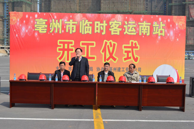 開工典禮由市交通局劉興群副局長主持,上午10時(shí)10分,交通局高川局長宣布項(xiàng)目正式開工。亳州建工董事長李濤代表施工單位致辭,他表示:客運(yùn)南站臨時(shí)客運(yùn)站工程的建設(shè),可以有效地緩解交通秩序,營造暢通和諧的城市環(huán)境,是建設(shè)“三個(gè)亳州”的迫切需要。參與這一重點(diǎn)工程建設(shè),我們深感榮幸和責(zé)任重大,為此我們組建了強(qiáng)有力的施工管理班子,選擇了精銳的施工隊(duì)伍,制訂了嚴(yán)密的施工計(jì)劃和扎實(shí)的安全防護(hù)措施,確保能安全優(yōu)質(zhì)高效地建設(shè)好該工程,不負(fù)政府和人民的所托。