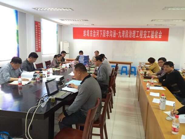 2014年4月24日,固鎮(zhèn)縣淮河支流建設(shè)管理局組織蚌埠市澮河下段治理工程施工2標(biāo)(李溝涵~九灣段河道治理工程)完工驗收,由固鎮(zhèn)縣水務(wù)局、固鎮(zhèn)縣河道管理局、固鎮(zhèn)縣財政局、安徽省水利水電勘測設(shè)計院、蚌埠市安利水利監(jiān)理工程有限公司、淮河河道測繪院等相關(guān)專家組成驗收工作組,驗收工作組進行了現(xiàn)場查看、查閱資料、聽取相關(guān)單位工作匯報,工作組一致認(rèn)為該工程管理規(guī)范、質(zhì)量滿足規(guī)范要求、資料齊全,同意驗收。蚌埠市水利局基建科科長孫荔,蚌埠市水利工程質(zhì)量監(jiān)督站站長王承芝應(yīng)邀參加。公司劉朝發(fā)副總經(jīng)理、李立柱部長、項目部全體工作人員參加了驗收會議。