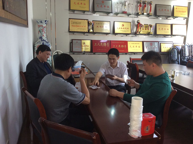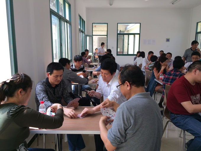 公司機(jī)關(guān)舉行慶五一撲克牌“摜蛋”比賽