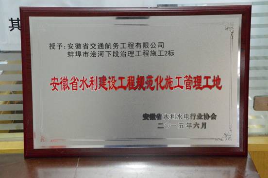 日前,我公司承建的蚌埠澮河下段治理工程獲評(píng)“安徽省水利建設(shè)工程規(guī)范化施工管理工地”,這也是公司首次榮獲水利系統(tǒng)省級(jí)工程獎(jiǎng)項(xiàng)。