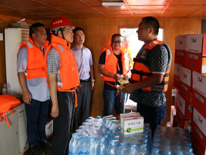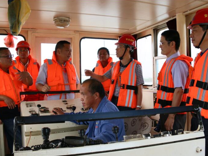 7月14日上午,集團(tuán)公司副總經(jīng)理王厚良、安全監(jiān)察局副主任葛輝在安徽交航公司副總經(jīng)理方申柱、總經(jīng)理助理、疏浚分公司總經(jīng)理董雙武的陪同下來到青弋江南陵縣四七圩倉溪段堤壩抗洪搶險(xiǎn)第一線現(xiàn)場(chǎng)指導(dǎo)抗洪搶險(xiǎn)工作。王總一行首先登上正在青弋江河道中進(jìn)行河道清淤的“蛟龍?zhí)枴?,查看施工作業(yè)進(jìn)度,指導(dǎo)安全度汛工作。他與船員們親切交談,詳細(xì)了解船舶作業(yè)原理、了解施工中遇到的難點(diǎn),指導(dǎo)船員們?cè)谑┕み^程中在安全方面應(yīng)該注意的事項(xiàng),囑咐安徽交航公司要做好船員生活的后勤保障工作。上岸后一行人又驅(qū)車趕往南陵縣四七圩倉溪段堤壩抗洪搶險(xiǎn)第一線,乘坐沖鋒舟,登上正在潰堤處進(jìn)行施工作業(yè)的抓斗船。登船后,王總與在船上值守的南陵縣水務(wù)局局長(zhǎng)鄭松淼進(jìn)行親切交談。鄭局長(zhǎng)感謝安徽建工、安徽交航公司對(duì)當(dāng)?shù)卣购榫葹?zāi)給予的大力支持,王總表示抗洪搶險(xiǎn)是我們國有企業(yè)應(yīng)當(dāng)承擔(dān)的社會(huì)責(zé)任,是應(yīng)該的。王總詳細(xì)查看了船上作業(yè)設(shè)備詢問了施工進(jìn)度,對(duì)辛苦作業(yè)的職工們給予鼓勵(lì)和問候,囑咐職工們?cè)谧鳂I(yè)同時(shí)要注意自身安全,并送上了慰問品和慰問金。職工們感謝集團(tuán)領(lǐng)導(dǎo)的關(guān)心,并紛紛表示將不辱使命,發(fā)揚(yáng)安徽建工人不怕苦不怕累,勇于拼搏的精神,爭(zhēng)取盡早完工,讓災(zāi)民們?cè)缛栈氐郊抑小?/FONT>