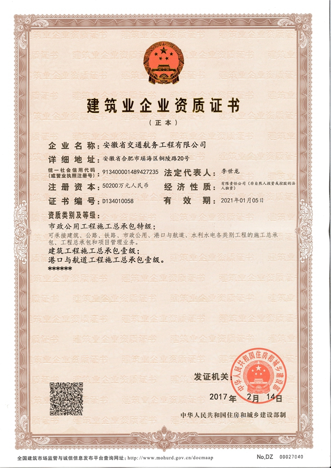 特級(jí)資質(zhì)的成功晉升,標(biāo)志著安徽交航發(fā)展邁入了又一座新的里程碑。特級(jí)資質(zhì)是我國(guó)建筑業(yè)資質(zhì)標(biāo)準(zhǔn)的最高級(jí)別,是衡量建筑企業(yè)整體實(shí)力的重要標(biāo)志,更是一個(gè)地區(qū)建筑業(yè)發(fā)展水平的重要標(biāo)志。