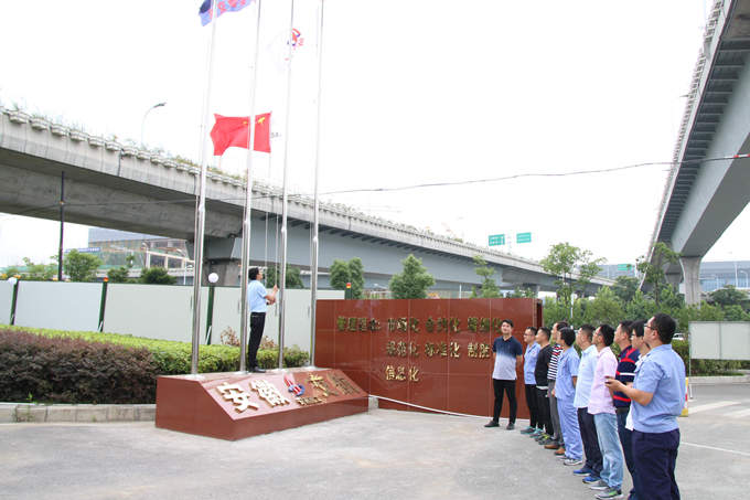 早上七點(diǎn),在項(xiàng)目經(jīng)理帶領(lǐng)下,地鐵支部所有黨員同志集合在旗臺(tái)前,升國(guó)旗、唱國(guó)歌、溫誓詞。大家迎著初升的朝霞,沐浴在黨的光輝之下。