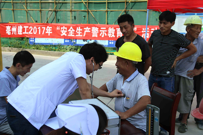 為體現(xiàn)公司對一線操作工人的關(guān)注與關(guān)懷,進一步提高項目操作工人的自我保護意識,助力項目的安全生產(chǎn),按照公司安全生產(chǎn)警示教育月活動安排,8月17日,亳州建工組織開展了操作工人免費健康體檢活動。