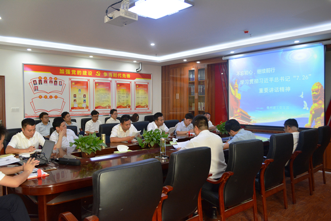 9月12日下午,亳州建工黨支部組織開展第三季度專題黨課,本次黨課以“不忘初心,繼續(xù)前行——深入學習貫徹習近平總書記‘7.26’重要講話精神”為主題,由支部書記李現(xiàn)龍主講,全體黨員、入黨積極分子參加。