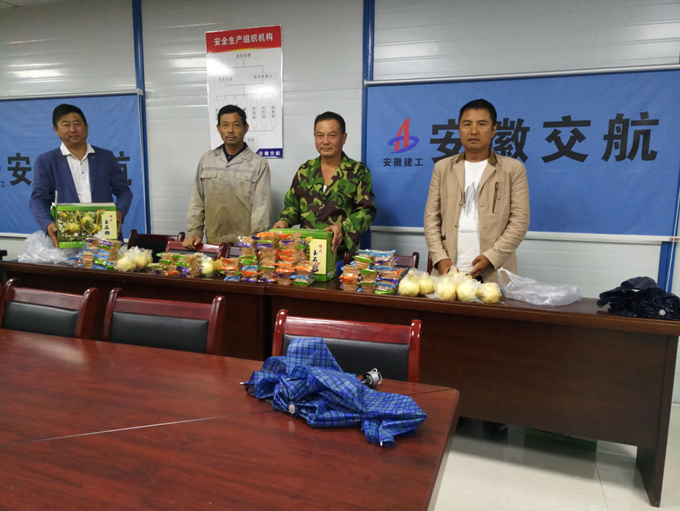 為了讓農(nóng)民工兄弟在工地上過(guò)一個(gè)幸福溫馨的國(guó)慶節(jié)、中秋節(jié),感受到交航公司帶來(lái)的溫暖,項(xiàng)目部將一盒盒象征團(tuán)圓的月餅,一箱箱飲料、水果等食品送到節(jié)日期間堅(jiān)守在本職崗位的農(nóng)民工兄弟手中。慰問(wèn)品雖簡(jiǎn)單,但承載了合軌項(xiàng)目部對(duì)民工兄弟的祝福與關(guān)愛(ài)。