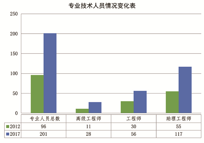 專業(yè)技術(shù)隊(duì)伍中,新晉1名正高級(jí)工程師,高級(jí)工程師及以上職稱共28人,相比第一次黨代會(huì)增加17人,增幅達(dá)到154.5%;工程師56人,增加26人,增幅為86.7%;助理工程師117人,增加62人,增幅為113%。