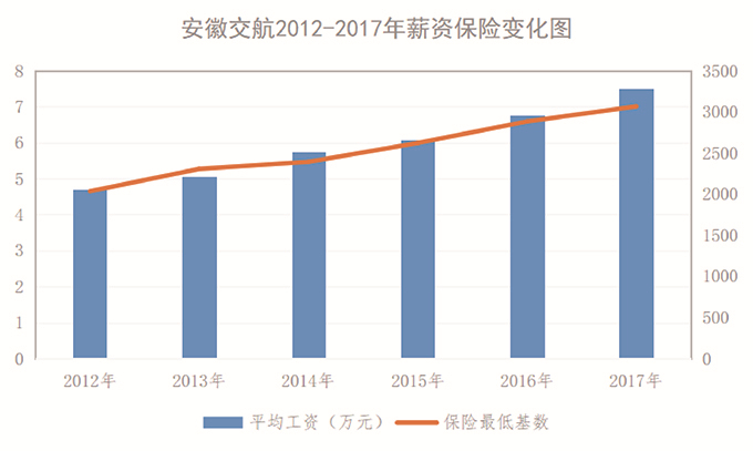 2012年,公司在職職工平均工資不足5萬元,2017年,人均工資上升至近8萬元,增幅達(dá)到了59.6%,薪資結(jié)構(gòu)由原來的基本工資與崗位工資的簡(jiǎn)單結(jié)合,轉(zhuǎn)變?yōu)榱嘶竟べY、崗位工資、效益考核工資及津補(bǔ)貼,薪資結(jié)構(gòu)更加多元化。