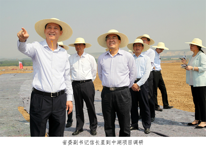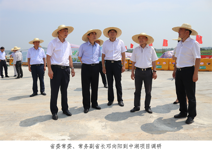 淮北市委市政府高度重視中湖項(xiàng)目,自開工以來,已有來自省委、省人大、省政協(xié)等單位的10余位省部級領(lǐng)導(dǎo)蒞臨現(xiàn)場視察工作。淮北市委書記、市人大常委會主任黃曉武常邀各級領(lǐng)導(dǎo)登上中湖一期1#湖心島視察,并親自當(dāng)起講解員,描繪未來淮北“一帶雙城三青山、六湖九河十八灣”的美好藍(lán)圖。