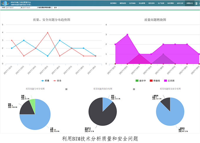 地鐵項目為了加快信息化的進(jìn)程,成立信息部,展開BIM技術(shù)的探索和應(yīng)用。BIM技術(shù)應(yīng)用到日常的生產(chǎn)過程中,包括場布模擬,提升臨建合理性,可視化;建立專業(yè)族庫,為后續(xù)應(yīng)用打下基礎(chǔ);鋼筋算量,為工程物資采購提供依據(jù);BIM質(zhì)量安全應(yīng)用,提升項目管理等。通過BIM平臺應(yīng)用,管理人員不僅可實(shí)時查看現(xiàn)場情況,還可以按照周、月查看問題匯總,進(jìn)行問題分析、統(tǒng)計,采取有針對性的管理措施?;贐IM5D平臺應(yīng)用,目前項目在質(zhì)量安全方面先行探索,按照要求對工程質(zhì)量、安全問題記錄管理,第一時間在線通知責(zé)任人進(jìn)行處理,可分階段大數(shù)據(jù)分析。同時,項目加強(qiáng)技術(shù)創(chuàng)新創(chuàng)優(yōu),在日常生產(chǎn)過程中針對所遇到的問題提出合理化建議,包括玻璃纖維筋代替盾構(gòu)圍護(hù)結(jié)構(gòu)中的普通鋼筋、優(yōu)化設(shè)計雨污水管線改遷代替原設(shè)計頂管施工、地鐵明挖車站可移動大鋼模板施工技術(shù)、盤扣支架施工技術(shù),并在安徽建筑網(wǎng)上發(fā)表科技論文《淺析BIM技術(shù)在軌道交通工程中發(fā)展與應(yīng)用》,這些喜人的創(chuàng)新獲得了集團(tuán)領(lǐng)導(dǎo)的充分肯定。