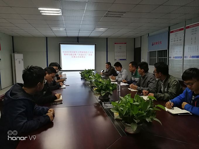 11月11日,沱澮河項目部召開了學(xué)習(xí)貫徹黨的十九大精神第二次會議暨“決戰(zhàn)60天”動員部署會。會議由支部副書記主持,項目部全體工作人員參會。
