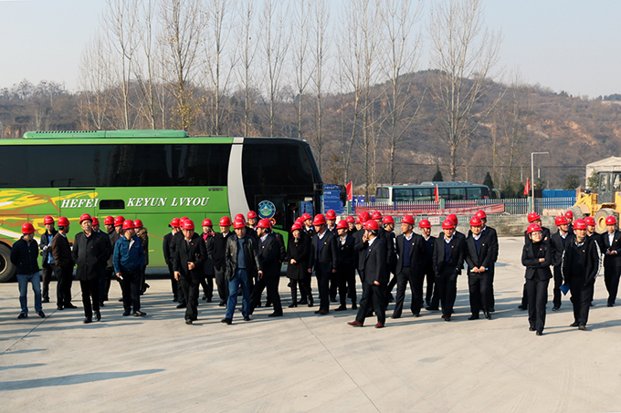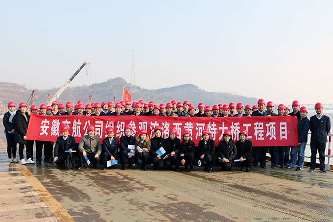 為深入學(xué)習(xí)宣傳貫徹黨的十九大精神,汲取優(yōu)秀項目管理經(jīng)驗,提升公司項目管理水平,12月1日上午,安徽交航公司領(lǐng)導(dǎo)班子成員、黨委委員,中層管理人員,各分(子)公司負責(zé)人,各在建項目經(jīng)理、常務(wù)副經(jīng)理,各黨支部書記、副書記,機關(guān)黨群部門全體工作人員,亳州建工相關(guān)人員等70余人前往安徽路橋公司濟洛西高速TJ-2標(biāo)(黃河特大橋)工程項目參觀學(xué)習(xí)。