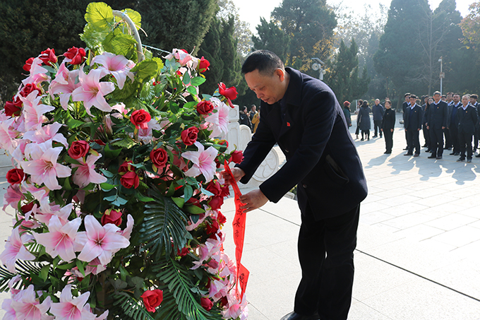 一大早,70余名黨員干部圍站在焦桐樹下,靜靜地聽著工作人員的講解,“焦裕祿經(jīng)過調查研究發(fā)現(xiàn)泡桐抗堿抗旱生命力頑強,為了治理蘭考風沙、鹽堿、內澇三大自然災害,他帶領全縣人民大規(guī)模栽種泡桐樹,使得蘭考的自然環(huán)境得到了根本性改善,經(jīng)濟社會發(fā)展由此發(fā)生了翻天覆地的變化……”。隨后,大家來到焦裕祿干部學院現(xiàn)場教學點——蘭考東壩頭黃河灣,走在總書記走過的路上,感受焦裕祿精神直指人心、觸動靈魂的強大力量。最后,70余名黨員干部來到焦裕祿紀念園,安徽交航公司黨委書記、董事長、總經(jīng)理李世龍向焦裕祿烈士之墓敬獻花籃,全體人員向革命烈士深深三鞠躬。莊嚴的緬懷儀式結束后,在李世龍的領誓下,全體黨員干部高舉右臂,重溫入黨誓詞,銘記入黨初心!