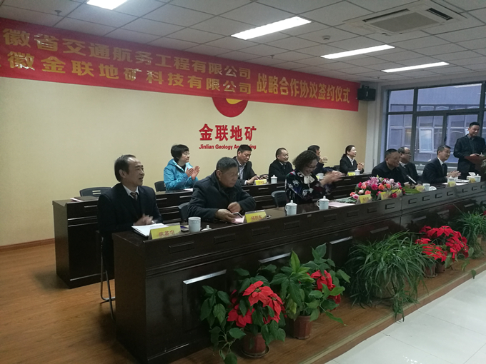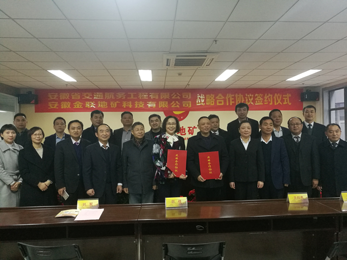 2017年12月6日,安徽省交通航務(wù)工程有限公司與安徽金聯(lián)地礦科技有限公司戰(zhàn)略合作簽約協(xié)議在合肥舉行。安徽交航公司黨委書記、董事長、總經(jīng)理李世龍,副總經(jīng)理、總工程師劉朝發(fā),黨委委員、紀(jì)委書記、工會主席李楊等領(lǐng)導(dǎo)班子成員及金聯(lián)地礦公司董事長秦月琴,總工程師楊則東,財務(wù)總監(jiān)陳英寧等一行出席了簽約儀式。