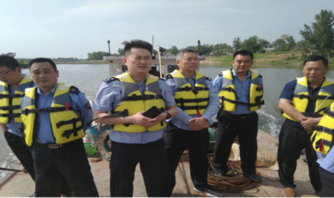會后,在項目經(jīng)理的帶領下,水務局執(zhí)法隊深入現(xiàn)場,考察現(xiàn)場施工安全情況與航道內(nèi)清淤的成果。朱隊長充分肯定了項目部做出的業(yè)績。在現(xiàn)場考察期間,一艘無人的非法采沙船當即被執(zhí)法隊扣下,調(diào)離河道。這樣強而有力的舉措是項目施工質(zhì)量的有力保證,更是人民生命財產(chǎn)安全的有力保證。