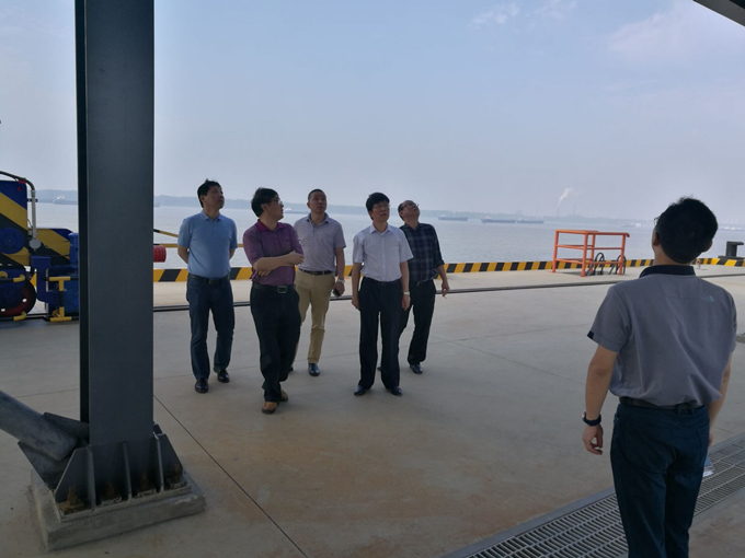 2018年5月24日上午,集團(tuán)公司副總經(jīng)理王厚良,集團(tuán)工程管理部主任童宗勝,集團(tuán)安全監(jiān)察局副局長葛輝,集團(tuán)工程管理部主管周曉彧,在公司副總經(jīng)理劉朝發(fā)、公司生產(chǎn)總調(diào)度周和友陪同下,深入安徽交航武漢新港張家灣港區(qū)晨鳴林紙一體化項(xiàng)目綜合碼頭工程檢查指導(dǎo)工作。