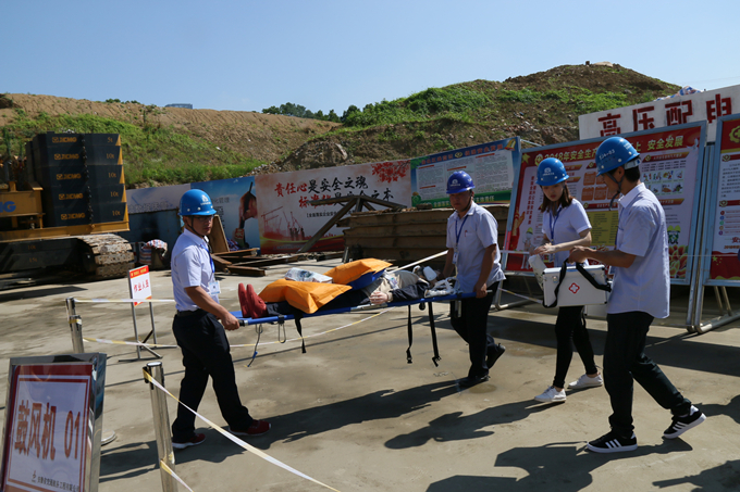 上午9時(shí)許,演練正式開始。本次演練模擬物體打擊事故應(yīng)急救援預(yù)案演練,現(xiàn)場安全員用對講機(jī)報(bào)告項(xiàng)目安全總監(jiān),項(xiàng)目安全總監(jiān)接報(bào)告后立即報(bào)告項(xiàng)目經(jīng)理,并啟動(dòng)應(yīng)急救援預(yù)案。對各小組進(jìn)行了合理分工,第一時(shí)間搶救受傷工人并撥打120救護(hù)車送往附近醫(yī)院。最終經(jīng)過救援,受傷工人得到及時(shí)救治。事故還演練了受限空間窒息性氣體中毒事故的處理過程。整個(gè)演練過程緊張有序,所有參演人員分工明確,應(yīng)急反應(yīng)與處理及時(shí)、規(guī)范,現(xiàn)場急救物資準(zhǔn)備齊全,順利完成了既定應(yīng)急演練科目。演練過后,項(xiàng)目部管理人員對此次應(yīng)急演練進(jìn)行了總結(jié)并與公司安管人員進(jìn)行了學(xué)習(xí)交流。