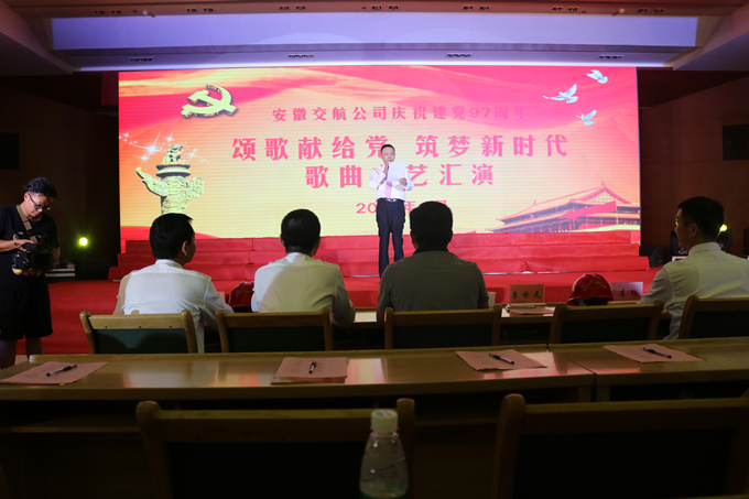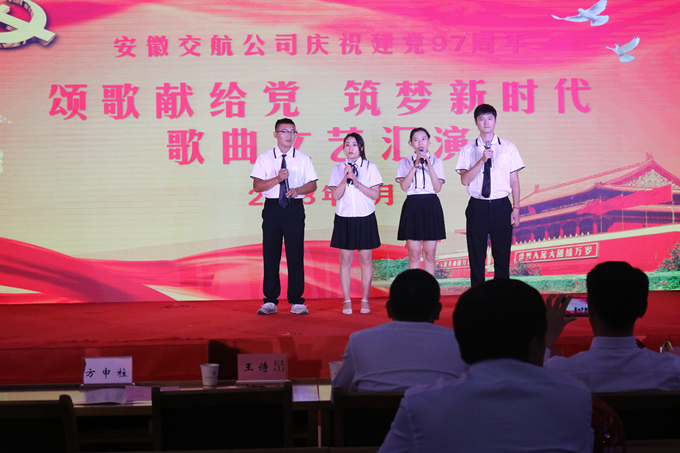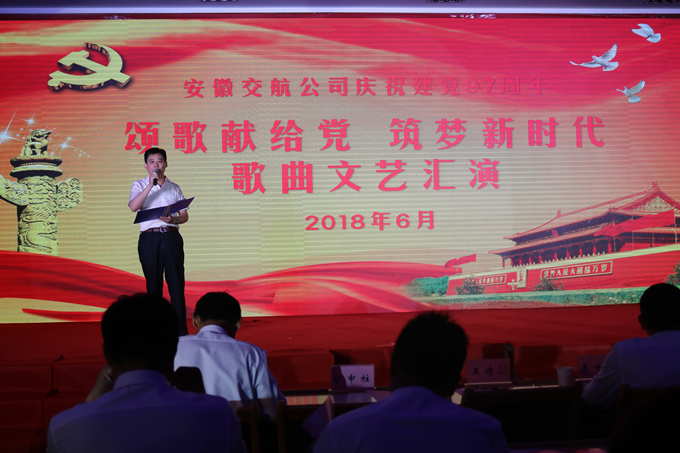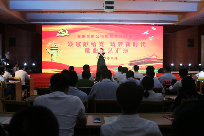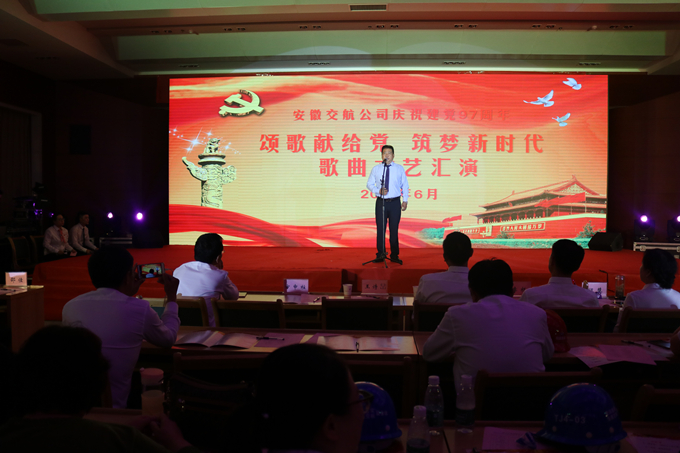 為慶祝中國(guó)共產(chǎn)黨成立97周年,展現(xiàn)安徽交航人開(kāi)拓進(jìn)取、奮發(fā)有為的精神面貌,6月23日晚,安徽交航公司在3樓禮堂隆重舉辦“頌歌獻(xiàn)給黨 筑夢(mèng)新時(shí)代”文藝匯演。