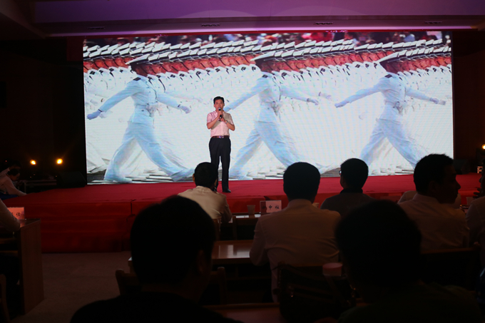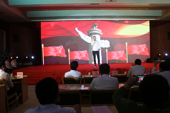公司黨委書(shū)記、董事長(zhǎng)、總經(jīng)理李世龍?jiān)谘莩鲩_(kāi)始前致辭,勉勵(lì)大家用紅歌的革命主旋律,在公司營(yíng)造出健康向上、團(tuán)結(jié)奮進(jìn)的良好氛圍。