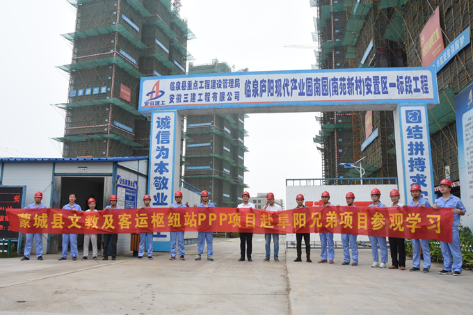2018年7月10日,在公司第二工程分公司副經(jīng)理王菲及蒙城PPP項(xiàng)目經(jīng)理李道生的帶領(lǐng)下,蒙城PPP項(xiàng)目組織開展“走出去、學(xué)回來”系列活動(dòng),赴阜陽兄弟項(xiàng)目參觀學(xué)習(xí)。