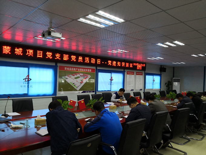 為了加深項目支部黨員對黨的認識和理解,督促項目支部黨員學習黨建知識,營造良好的學習氛圍。11月15日,蒙城項目黨支部通過黨員活動日的形式開展了一場別開生面的“黨建知識測試”,此次測試在蒙城職教園項目會議室開考,前來趕考的“考生”一部分是蒙城項目的黨員,一部分是蒙城項目黨支部近期吸收發(fā)展的積極分子。