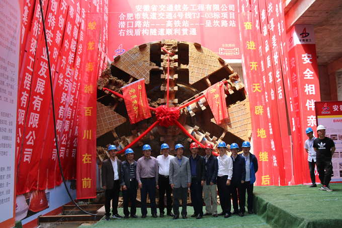歷時372天,行程1665米,安徽交航“奮進一號”盾構(gòu)機圓滿完成了合肥軌道交通4號線“潛口路站~高鐵站~呈坎路站”右線區(qū)間掘進任務,于2019年5月6日上午舉行了“奮進一號”接收儀式。合肥市軌道交通工程質(zhì)監(jiān)站副站長汪勁松,市軌道公司安容民處長、許如專處長,安徽建工控股黨委委員、股份公司董事長王厚良,安徽交航黨委書記、董事長李世龍、總經(jīng)理方申柱、副總經(jīng)理兼軌道項目常務副指揮長侯力,宏潤建設(shè)集團項目負責人翁厚洋等領(lǐng)導參加接收儀式。