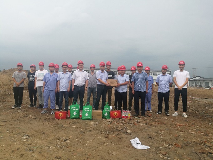 夏日炎炎,烈暑當(dāng)頭。近日,全省大部持續(xù)發(fā)布高溫橙色預(yù)警。亳州市2號(hào)3號(hào)地塊PPP項(xiàng)目人員冒著酷暑在一線緊張有序開展生產(chǎn),為確保一線員工身體健康,落實(shí)安全生產(chǎn)。8月1日,公司黨委委員、總經(jīng)理助理邵佳一行赴亳州2號(hào)3號(hào)地塊PPP項(xiàng)目送清涼。