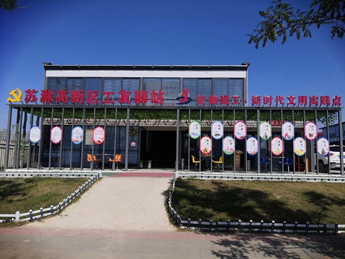 在觀摩過程中,時代樾府項目經(jīng)理田龍對施工現(xiàn)場的安全管理、文明施工、臨時用電、噴淋灑水降塵系統(tǒng)、定型化臨邊防護、體驗式安全培訓(xùn)基地、樣板引路展示區(qū)、二維碼技術(shù)應(yīng)用等向觀摩人員作一一介紹。特別是項目在新時代背景下建立的“安徽建工·新時代文明實踐點”,本著服務(wù)工友的工作思路,設(shè)置了便民中心、教育培訓(xùn)中心、休閑娛樂及籃球場、羽毛球場等設(shè)施,并不定期提供免費的理發(fā)、縫補衣物、體檢、網(wǎng)絡(luò)、茶水等服務(wù),給觀摩人員留下深刻印象。