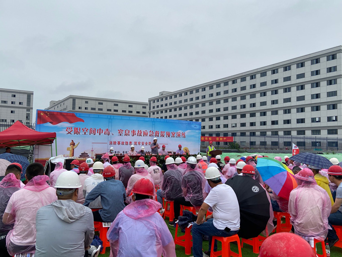 6月12日,安徽交航公司亳州2號(hào)3號(hào)地塊PPP項(xiàng)目部組織開展受限空間中毒、窒息事故應(yīng)急演練。亳州市住房和城鄉(xiāng)建設(shè)局、亳州市建筑市場(chǎng)管理處、經(jīng)開區(qū)規(guī)劃建設(shè)局、監(jiān)理單位、120救援中心,亳州2號(hào)3號(hào)地塊項(xiàng)目部人員以及觀摩人員等100余人冒雨參加演練。公司生產(chǎn)總調(diào)度、工程管理部主任周和友主持演練。
