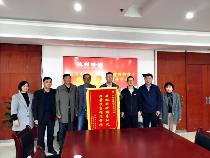 10月31日上午, 集團(tuán)派駐宿松縣趾鳳村扶貧工作隊隊長、第一書記鄭軍,趾鳳鄉(xiāng)黨委委員、武裝部長吳行舟,趾鳳村“兩委”班子一行到訪安徽交航公司,將一面寫著“安徽交航情系趾鳳,消費(fèi)扶貧精準(zhǔn)幫扶”的錦旗送到了公司黨委副書記、總經(jīng)理方申柱手中,對公司消費(fèi)扶貧精準(zhǔn)幫扶工作表達(dá)誠摯的感謝。座談交流中,雙方就趾鳳村如何增添幫扶舉措及鞏固扶貧成效等方面進(jìn)行了深入的溝通和交流。