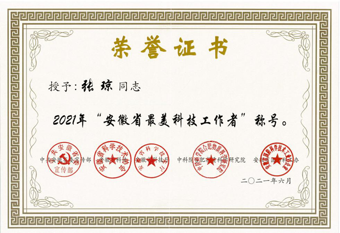 據(jù)了解,2021年“安徽省最美科技工作者”學(xué)習(xí)宣傳活動(dòng)由中共安徽省委宣傳部、安徽科協(xié)、安徽省科技廳、中科院合肥物質(zhì)科學(xué)研究院、安徽省國(guó)防科工辦聯(lián)合舉辦,旨在進(jìn)一步弘揚(yáng)中國(guó)科學(xué)家精神,激發(fā)廣大科技工作者的榮譽(yù)感、自豪感、責(zé)任感,引導(dǎo)和激勵(lì)廣大科技工作者學(xué)習(xí)最美、爭(zhēng)當(dāng)最美,以飽滿的精神狀態(tài)和昂揚(yáng)的奮斗姿態(tài)迎接新時(shí)代、踏上新征程,匯聚起建設(shè)新時(shí)代現(xiàn)代化美好安徽、 實(shí)現(xiàn)中華民族偉大復(fù)興中國(guó)夢(mèng)的磅礴力量。經(jīng)過(guò)主辦單位專家的層層選拔和嚴(yán)格篩選,最終在全省范圍內(nèi)遴選確定了10位2021 年“安徽省最美科技工作者”,張瓊同志是唯一一位作為施工企業(yè)科技工作者獲得此項(xiàng)榮譽(yù)的獲獎(jiǎng)?wù)摺?/FONT>
