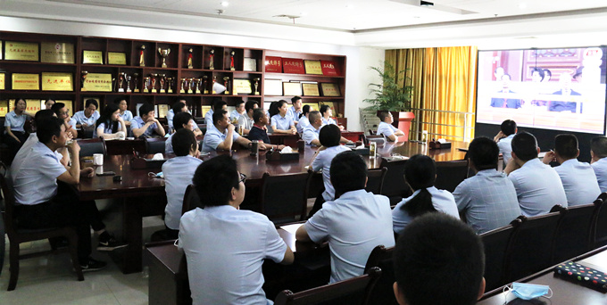 公司領(lǐng)導(dǎo)班子同機關(guān)黨員、干部和職工一起認真觀看慶祝中國共產(chǎn)黨成立100周年大會直播