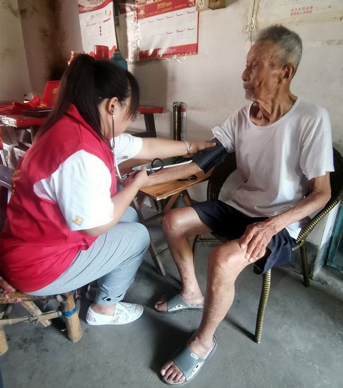 當(dāng)日,項(xiàng)目支部書記顧永根帶領(lǐng)項(xiàng)目黨員、青年志愿者到嚴(yán)店鄉(xiāng)劉河社區(qū)、大豐村走訪慰問吳昌兵、李松兩名老兵,這兩名老兵分別參加過解放戰(zhàn)爭和抗美援朝戰(zhàn)爭。慰問中,大家詳細(xì)了解了他們的身體狀況和生活起居情況,認(rèn)真聆聽了老兵們的革命斗爭英勇事跡,觀看了老兵們的軍功紀(jì)念章及獎?wù)?,并向兩位退伍老兵們送上了慰問品,表達(dá)了節(jié)日的誠摯祝福。隨后,由醫(yī)護(hù)專業(yè)的青年志愿者給兩位老兵進(jìn)行了基礎(chǔ)性健康體檢。