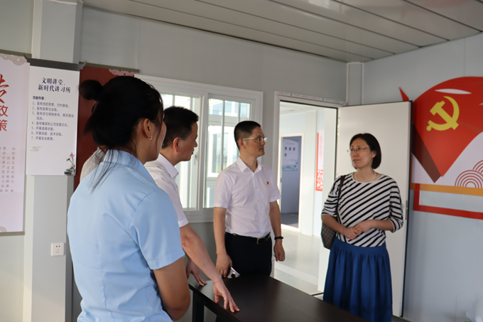 活動中,省住建廳質(zhì)安處領(lǐng)導(dǎo)參觀了引江濟(jì)淮項目部新時代文明實踐點,聽取了公司新時代文明實踐點的建設(shè)由來、功能定位、建設(shè)意義以及活動開展情況的詳細(xì)介紹,著重了解了公司新時代文明實踐點“黨建領(lǐng)航提質(zhì)筑安工作”的創(chuàng)新做法以及設(shè)立農(nóng)民工監(jiān)督員的初衷,并對公司新時代文明實踐點建設(shè)給予了充分肯定。在隨后的座談交流中,雙方首先學(xué)習(xí)了《生命重于泰山——學(xué)習(xí)習(xí)近平總書記關(guān)于安全生產(chǎn)重要論述》,并圍繞“支部建在工地上”的主題交流和討論了項目黨建工作和新時代文明實踐點的創(chuàng)新做法。