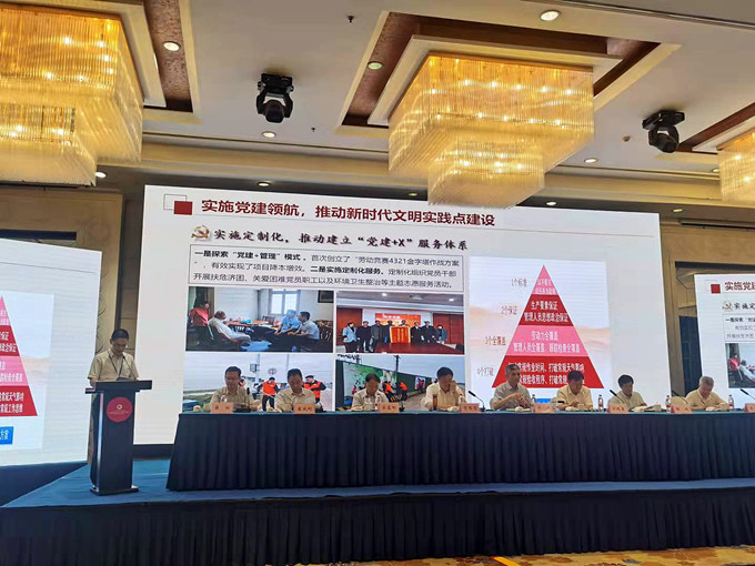 會上,方申柱通過PPT形式圖文并茂地介紹了安徽交航項目黨建工作經(jīng)驗做法以及主要工作成效。在談及黨建工作經(jīng)驗做法時,方申柱從兩個大方面進行了介紹:一是聚焦一個文明實踐。即以新時代文明實踐點為載體,通過整合四種資源、實施定制化服務、設立農(nóng)民工監(jiān)督員,高標準推動提質(zhì)筑安走深走實。二是點亮“三個紅色”。即通過打造“紅色堡壘”、激活“紅色細胞”、編制“紅色紐帶”,充分基層黨組織的戰(zhàn)斗堡壘作用。