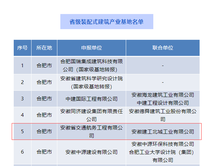 日前,安徽交航公司與安徽建工北城工業(yè)公司組成聯(lián)合體成功入選省級裝配式建筑產(chǎn)業(yè)基地,成為安徽首家以市政為主業(yè)的裝配式建筑產(chǎn)業(yè)基地。