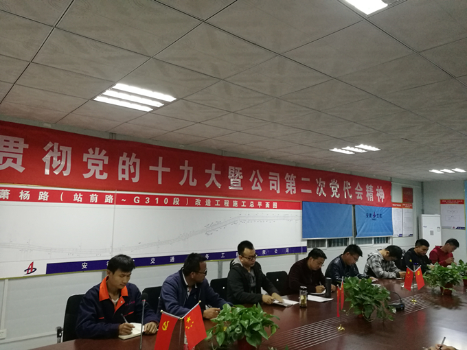 為把黨的十九大及公司黨代會(huì)精神落到實(shí)處,讓項(xiàng)目員工深刻領(lǐng)會(huì)項(xiàng)目工作的開展要和黨的思想引領(lǐng)緊密結(jié)合起來,堅(jiān)定信心,牢記使命,11月3日,蕭楊路項(xiàng)目組織召開專題會(huì)議學(xué)習(xí)貫徹黨的十九大及公司黨代會(huì)精神,助力施工生產(chǎn)。