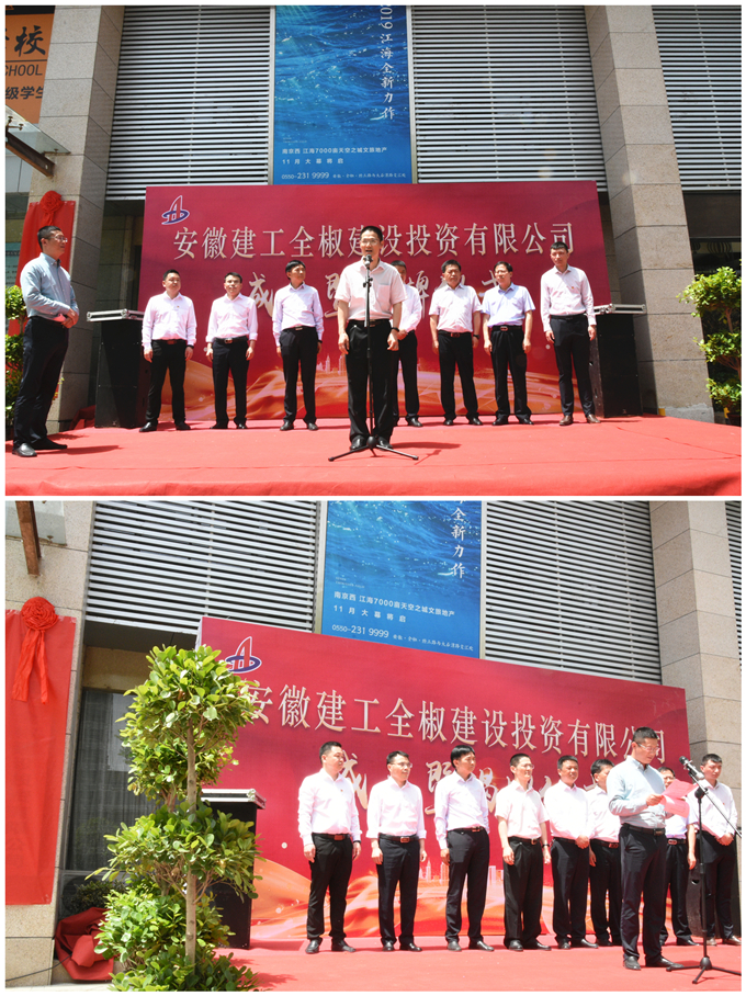 5月8日上午10:58,安徽建工全椒建設(shè)投資有限公司成立儀式在全椒縣舉行,安徽交航黨委書記、董事長、總經(jīng)理方申柱和全椒縣人民政府副縣長陳勁松共同為安徽建工全椒建投公司揭牌。