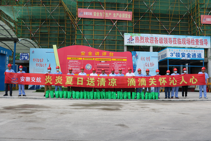 盛夏時(shí)節(jié),酷暑高溫。為切實(shí)做好一線職工的防暑降溫工作,確保一線職工平安度夏,8月3日上午,公司黨委委員、副總經(jīng)理張瓊一行赴滁州項(xiàng)目看望慰問一線職工,為他們送去了洗發(fā)水、沐浴露、毛巾、防曬袖、防暑藥品等防暑降溫物品。