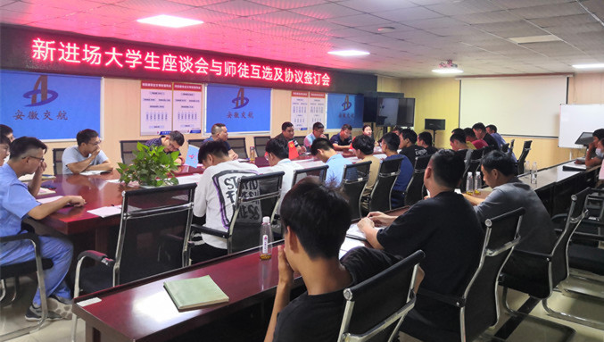 9月2日18:30,滁州項(xiàng)目開展大學(xué)生座談會(huì)暨導(dǎo)師帶徒活動(dòng),組織9對(duì)師徒簽署師徒協(xié)議。項(xiàng)目部全體黨員、青年骨干及新入職大學(xué)生。會(huì)議由支部書記田龍主持。