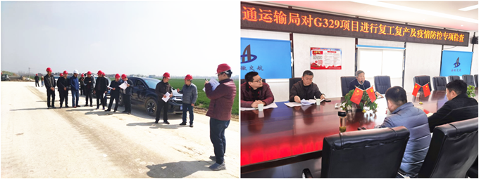 3月4日上午,亳州市交通運輸局建管科科長袁偉一行,到安徽交航G329項目開展節(jié)后復(fù)工復(fù)產(chǎn)及疫情防控情況專項檢查。三公司經(jīng)理潘家奎及項目管理人員參加檢查。