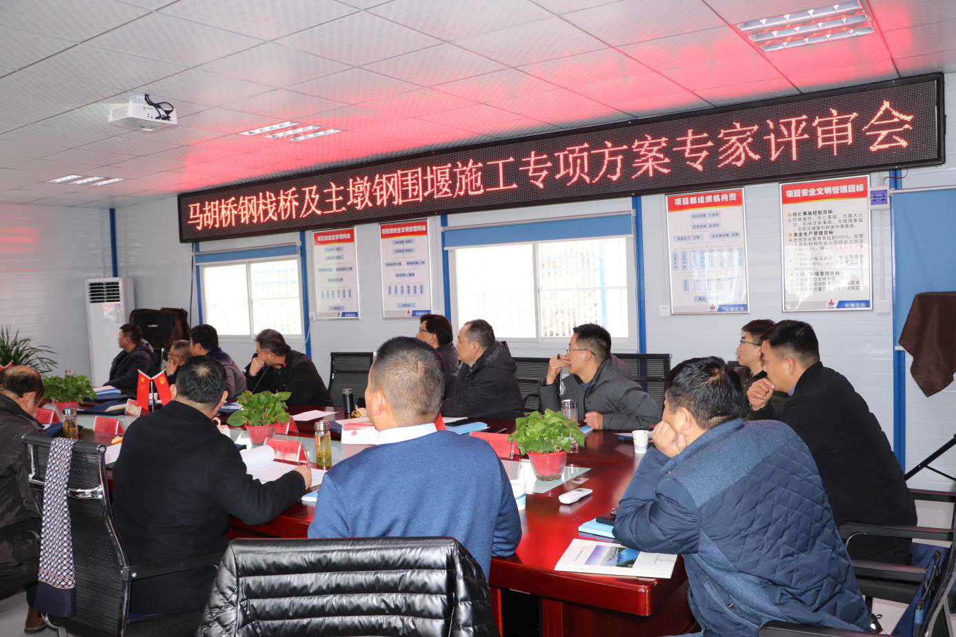 12月18日下午,在公司總工辦組織下,利辛馬胡橋項目部召開了利辛縣S247馬胡橋改建工程鋼棧橋及主墩鋼圍堰施工專項方案專家評審會。公司黨委委員、副總經(jīng)理張瓊和總工辦主任衛(wèi)邦齊參加了本次會議。