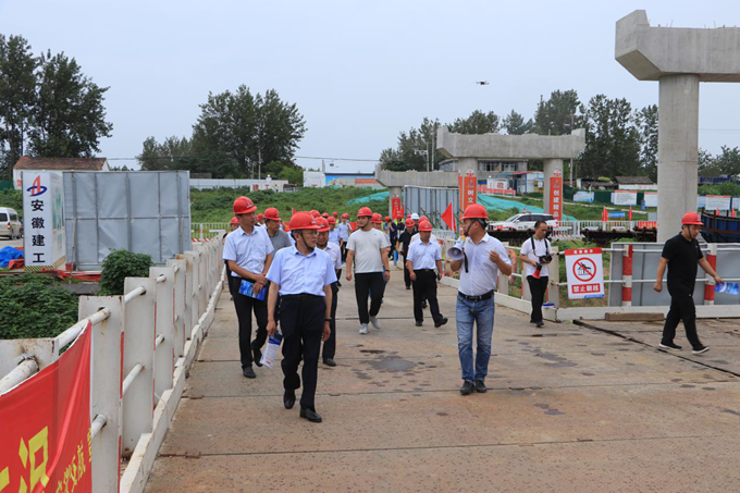 八月的文州大地草木蔥蘢、驕陽似火,利辛縣S247馬胡橋改建工程項目全體人員正在埋頭苦干。8月7日中午,亳州市交通局黨組書記、局長孫善豹,副局長徐天生一行到安徽交航利辛縣S247馬胡橋改建工程觀摩。亳州市海事局、市公路局、市各縣區(qū)交通局以及全市各交通重點項目負(fù)責(zé)人陪同。