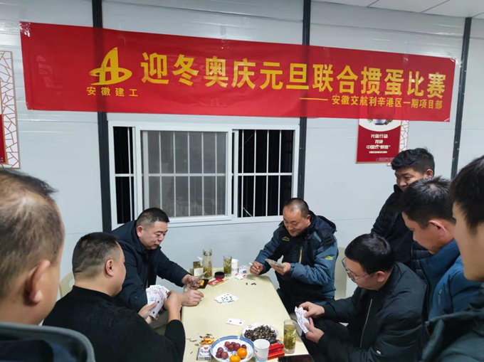 為豐富職工業(yè)余文化生活,促進(jìn)職工精神面貌提升,1月1日,利辛港區(qū)項(xiàng)目部組織開展以“迎冬奧·慶元旦”為主題的職工摜蛋比賽。