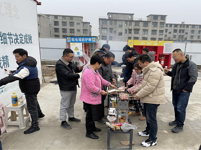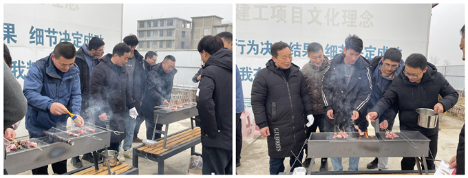 當(dāng)日傍晚,全體職工一起在項(xiàng)目部大院內(nèi)燒烤聚餐。到場(chǎng)后大家分工合作、一起動(dòng)手,有人洗菜,有人裝盤,有人燒炭、有人涂料,體驗(yàn)了“自己動(dòng)手豐衣足食”的樂(lè)趣。面對(duì)豐富的食物,大家烤得熱火朝天,吃得不亦樂(lè)乎,歡聲笑語(yǔ)連成片,食物的香味和大家的笑聲在項(xiàng)目部大院內(nèi)久久不散。