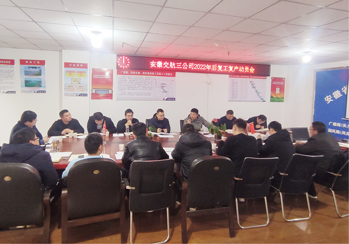 2月11日下午,三公司2022年復(fù)工復(fù)產(chǎn)工作動(dòng)員會(huì)在肥召開(kāi)。會(huì)議強(qiáng)調(diào),要以“開(kāi)局就是決戰(zhàn),起步就要沖刺”的昂揚(yáng)姿態(tài),下好先手棋、打好主動(dòng)仗,以敢于擔(dān)當(dāng)?shù)挠職狻⑶笳鎰?wù)實(shí)的行動(dòng),高效推進(jìn)復(fù)工復(fù)產(chǎn),為全年各項(xiàng)工作任務(wù)完成奠定堅(jiān)實(shí)基礎(chǔ)。分公司班子成員、各項(xiàng)目負(fù)責(zé)人、項(xiàng)目總工及部分項(xiàng)目職工代表參加會(huì)議。分公司黨支部書(shū)記、總經(jīng)理潘家奎主持會(huì)議。