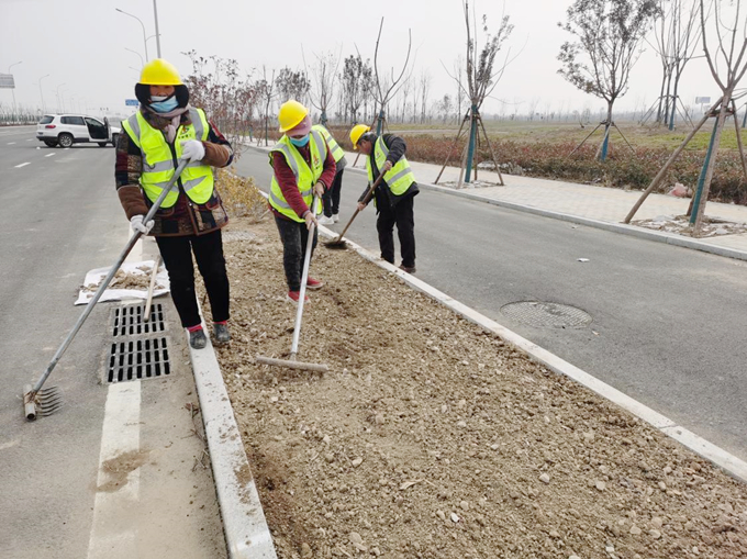 2月10日,亳州2號(hào)3號(hào)地塊項(xiàng)目施工人員進(jìn)行綠化施工收尾工作